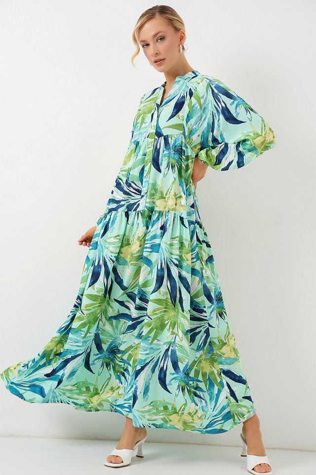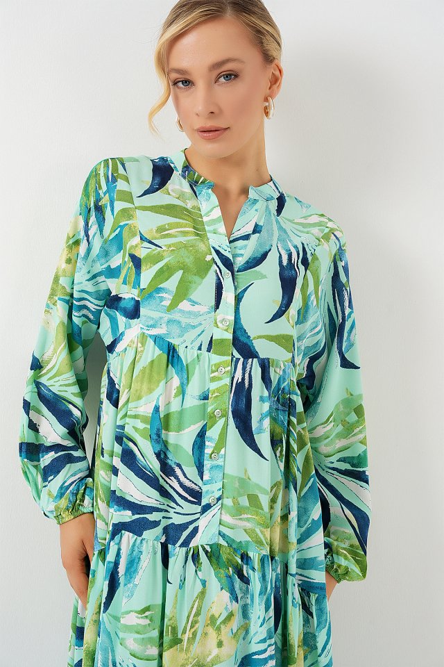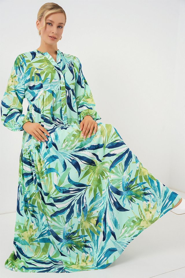 2423 Otantik Desenli Tesettür Elbise - E.Mint