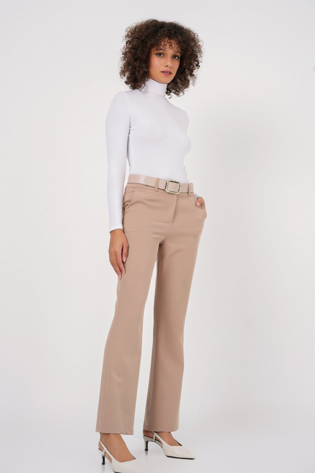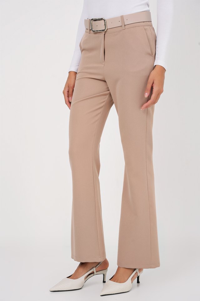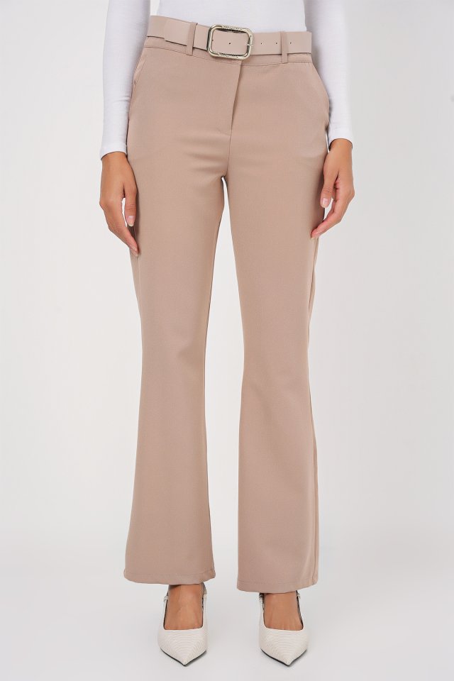 6538 Kemerli İspanyol Paça Pantolon - Bej