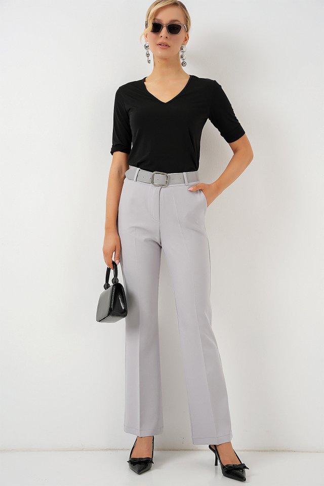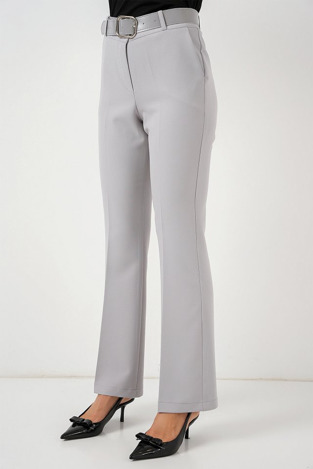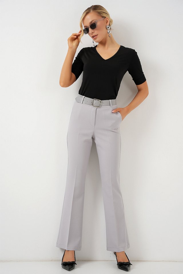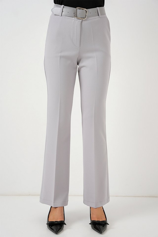 6538 Kemerli İspanyol Paça Pantolon - Gri