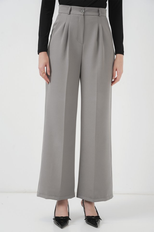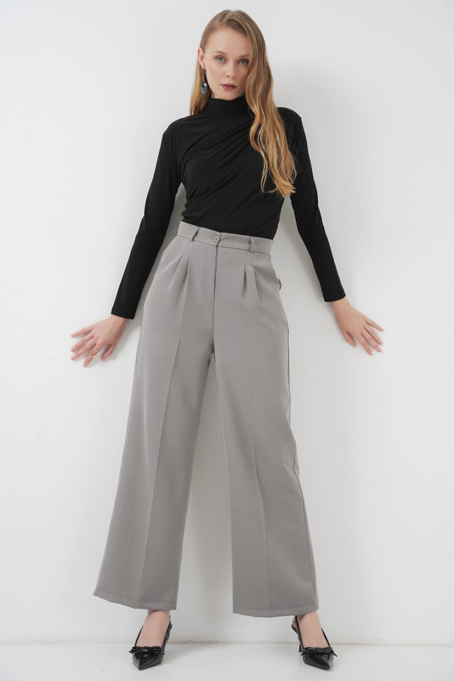 6647 Bol Paça Kumaş Pantolon - Gri