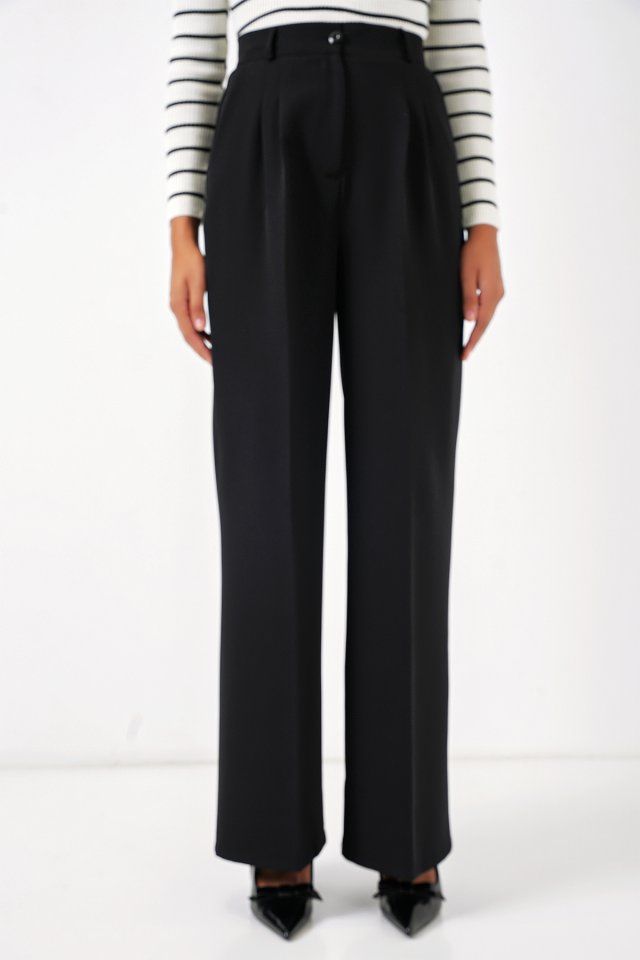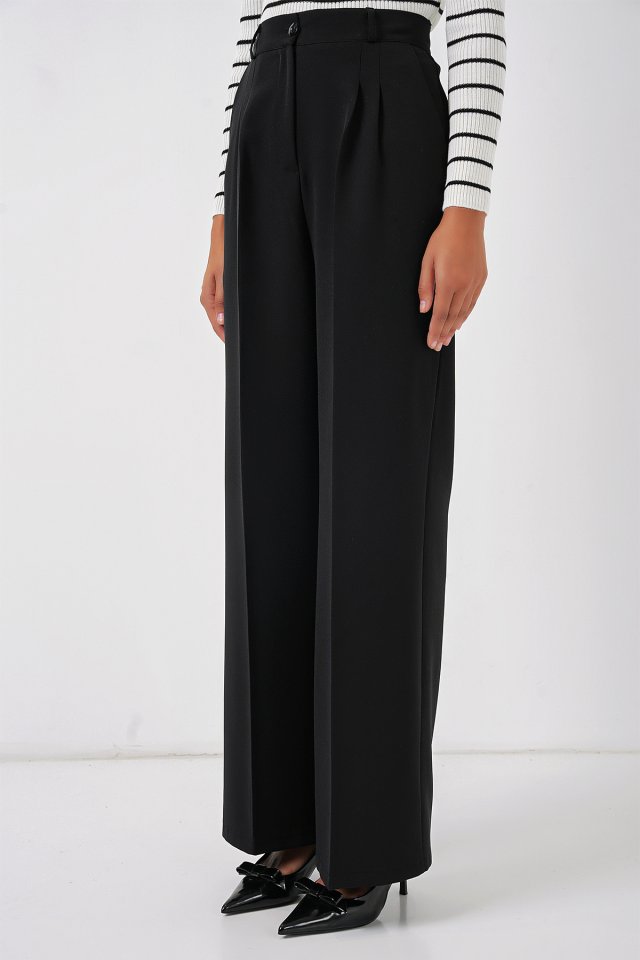 6647 Bol Paça Kumaş Pantolon - Siyah