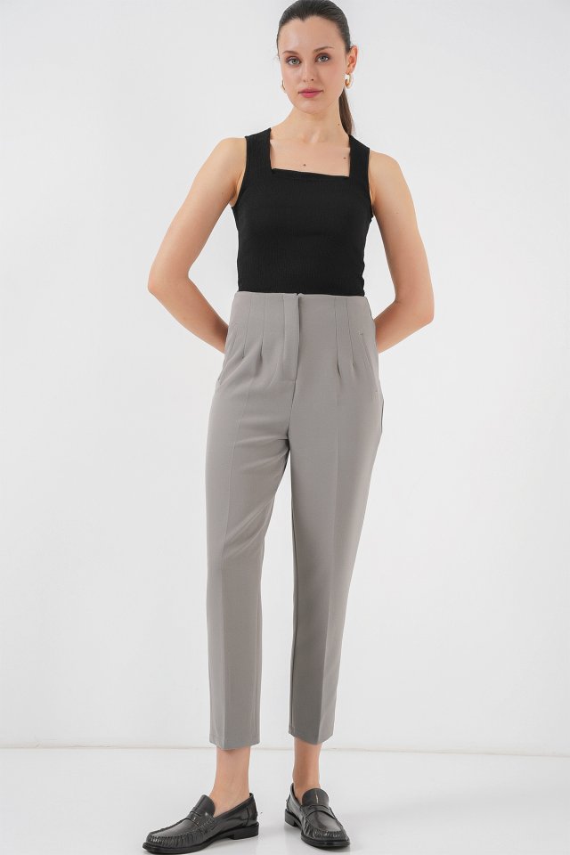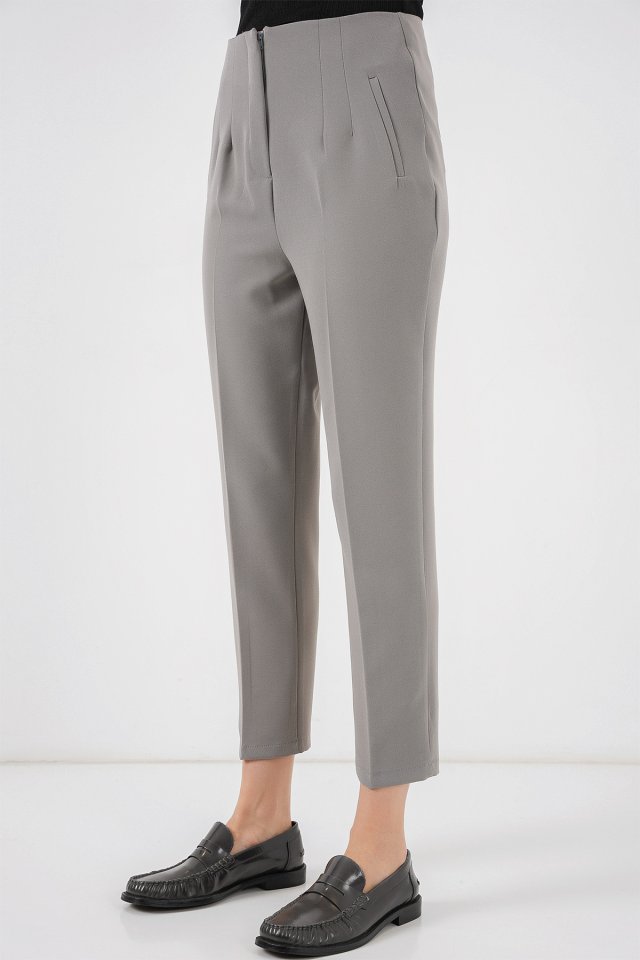 6650 Yüksek Bel Kumaş Pantolon - Gri
