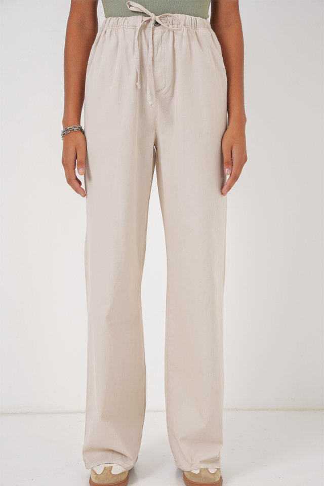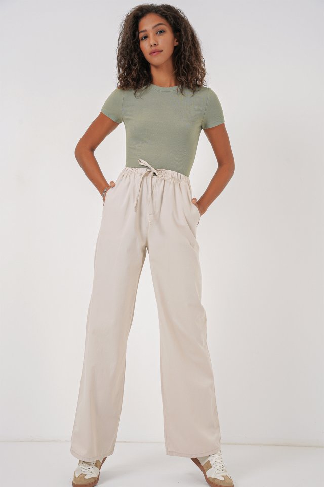 6690 Bol Paça Yüksek Bel Pantolon - Krem