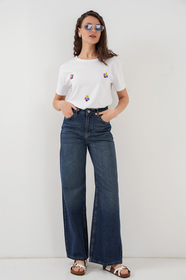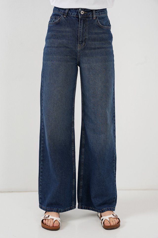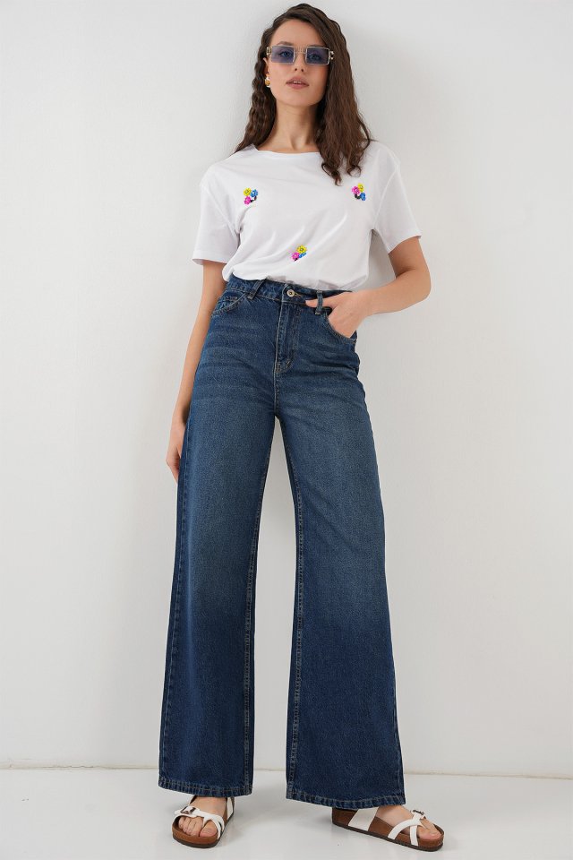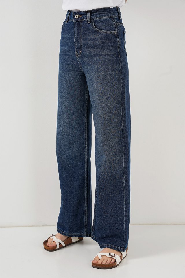 Bol Paça Yüksek Bel Palazzo Kot Pantolon 6656 - B.Lacivert