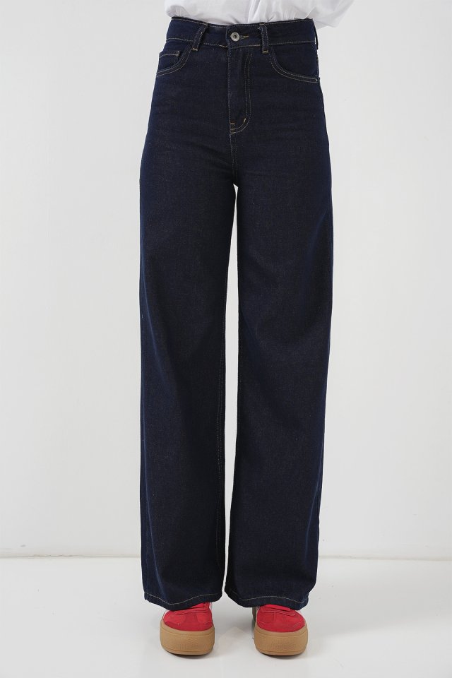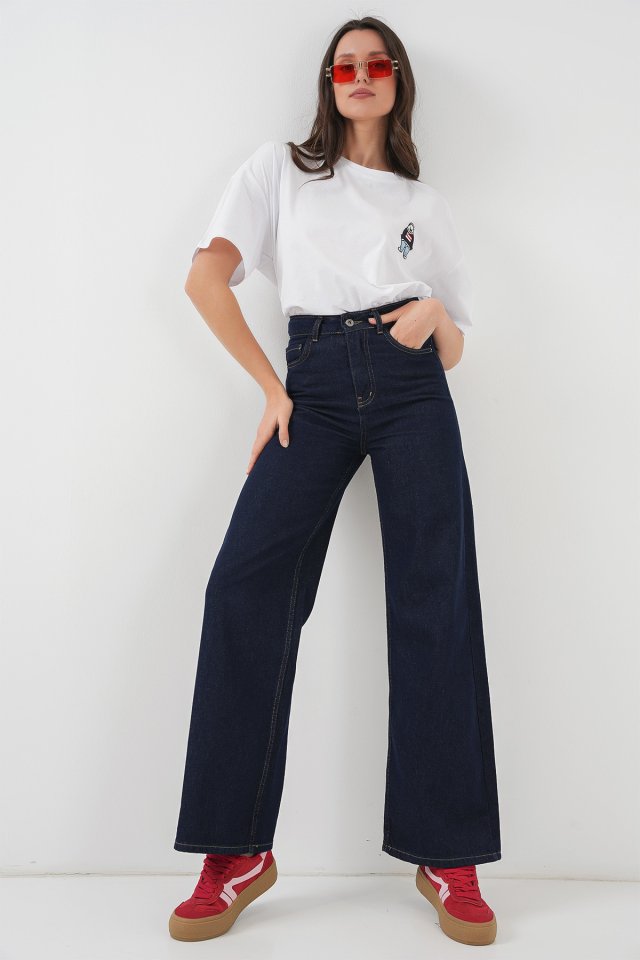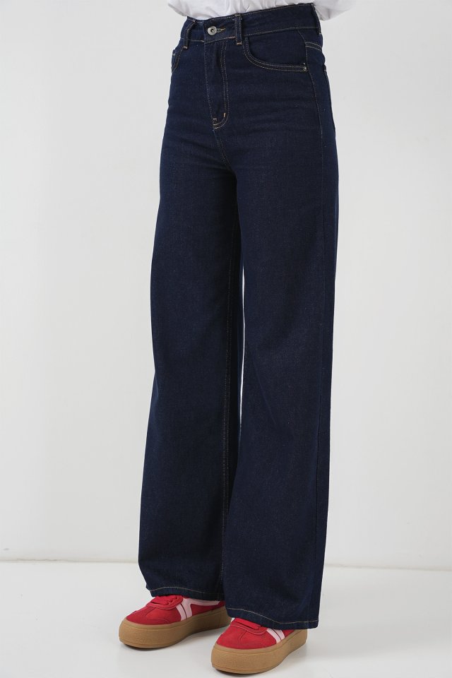 Bol Paça Yüksek Bel Palazzo Kot Pantolon 6656 - K. Lacivert