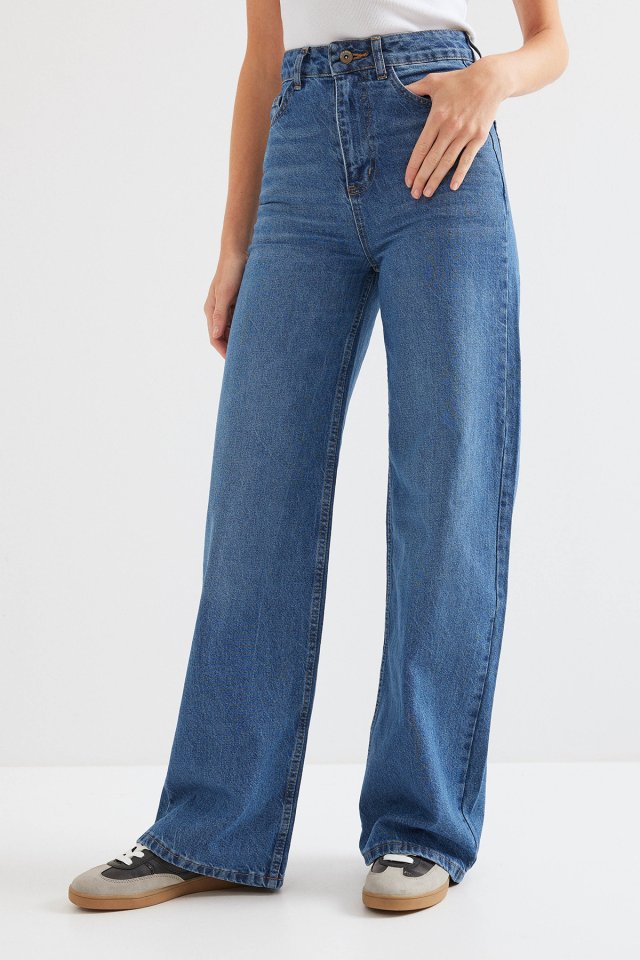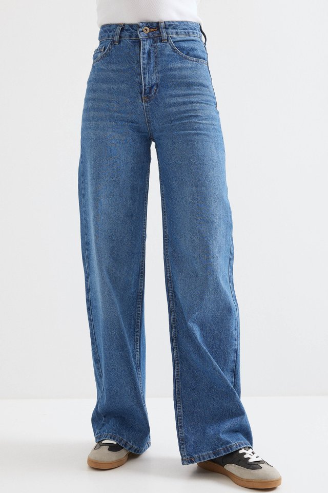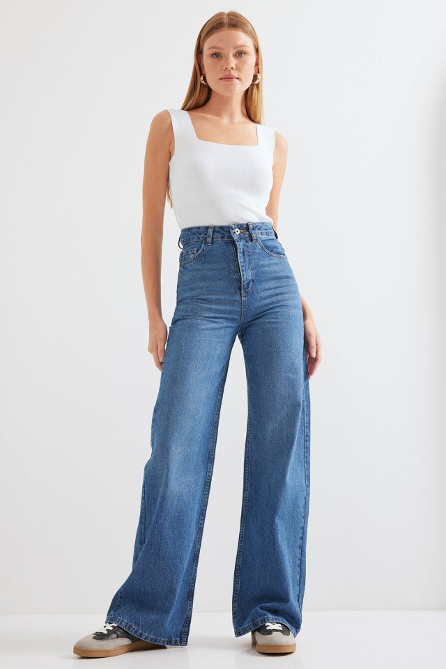 Bol Paça Yüksek Bel Palazzo Kot Pantolon 6656 - Lacivert