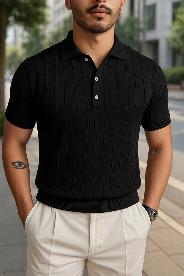 Erkek Kısa Kollu Yakalı önden Düğmeli Triko Bluz