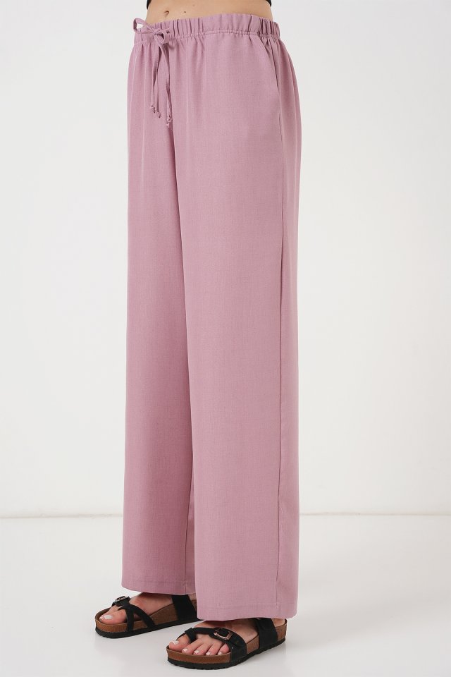 Geniş Paça Keten Pantolon 6735 - Gül Kurusu