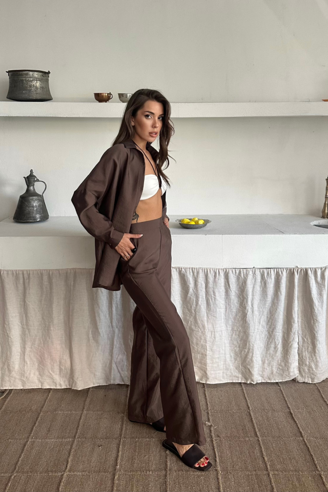 GÖMLEK-PANTOLON TAKIM CUPRA KUMAŞ - Kahverengi