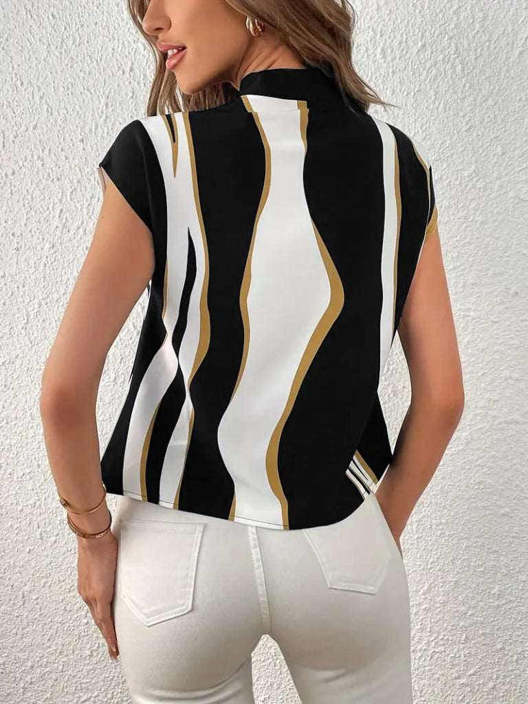 Kadın Kısa Kollu Boyundan Bağlamalı Desenli Dokuma Bluz