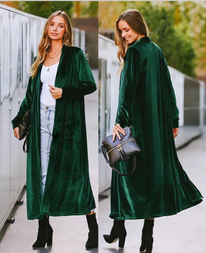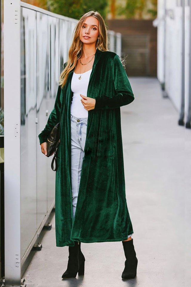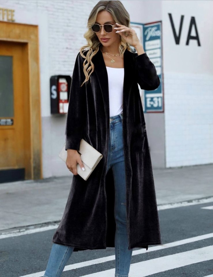 Kadın Uzun Kollu önü Açık Kolları Uzun Midi Ceket