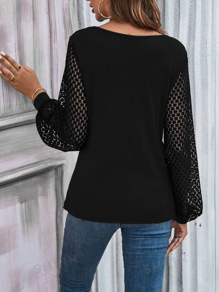 Kadın Uzun Kollu Tüllü Kruvaze Yaka çapraz Kesim Detaylı Viskon Bluz