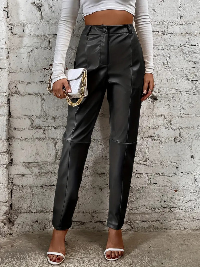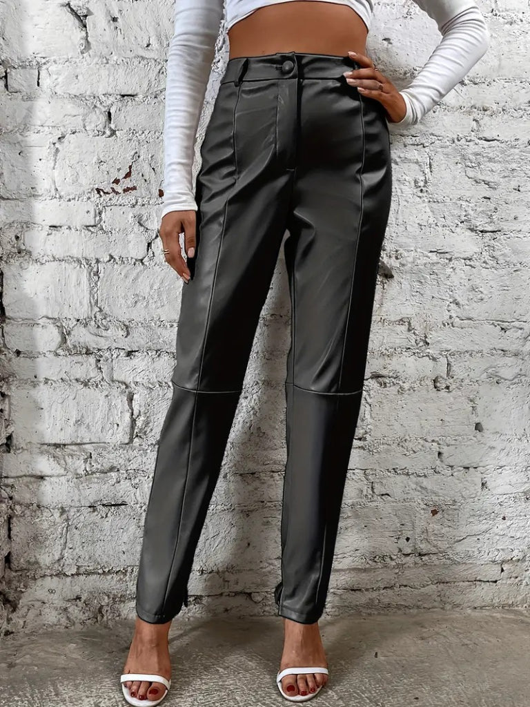 Kadın Yüksek Bel önden Düğmeli Deri Pantolon