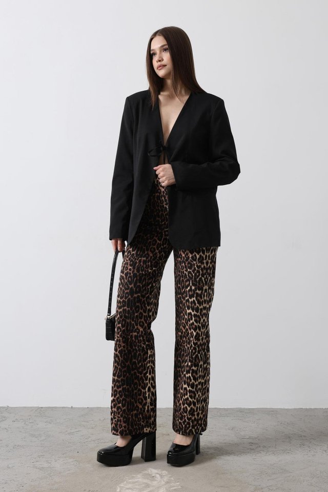 Önü Bağlamalı Blazer Ceket - Siyah