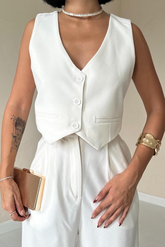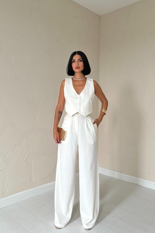 Ekru Klas Ceket Ve Yelek Ve Pantolon Takım