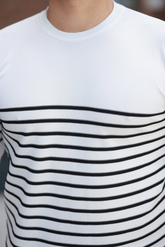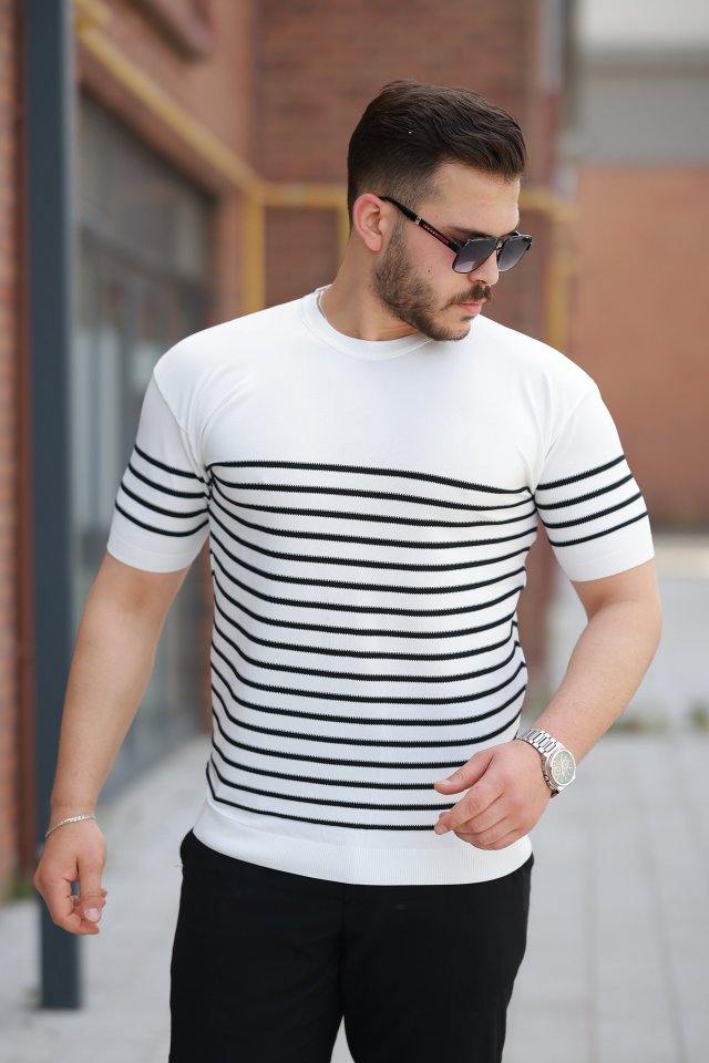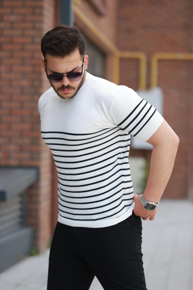 Erkek çizgi Desenli Bisiklet Yaka Kısa Kollu T-sihrt