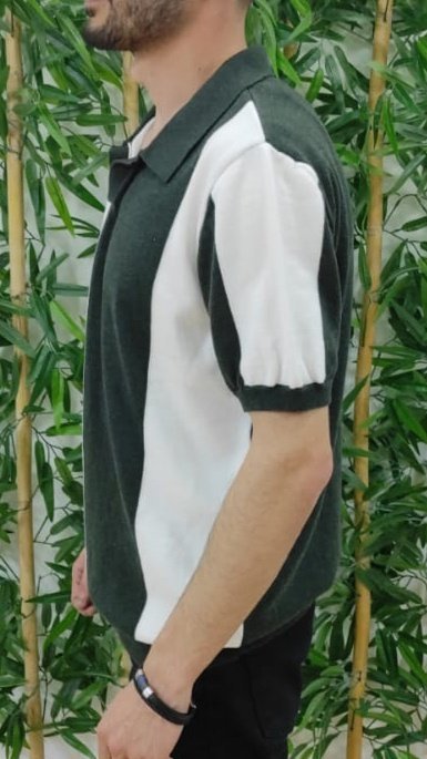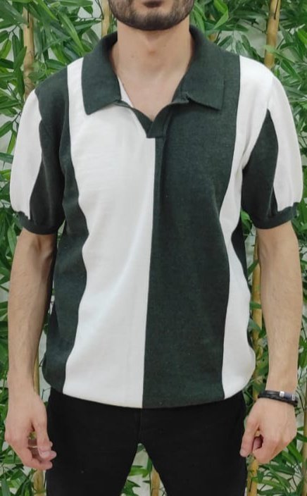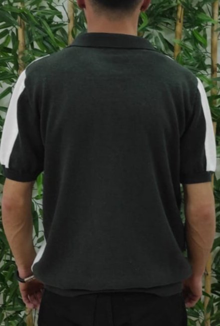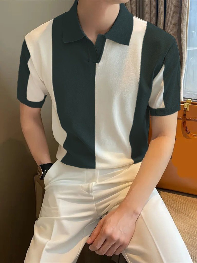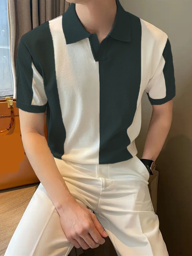 Erkek Kısa Kollu Polo Yakalı Blok Desenli Triko Bluz