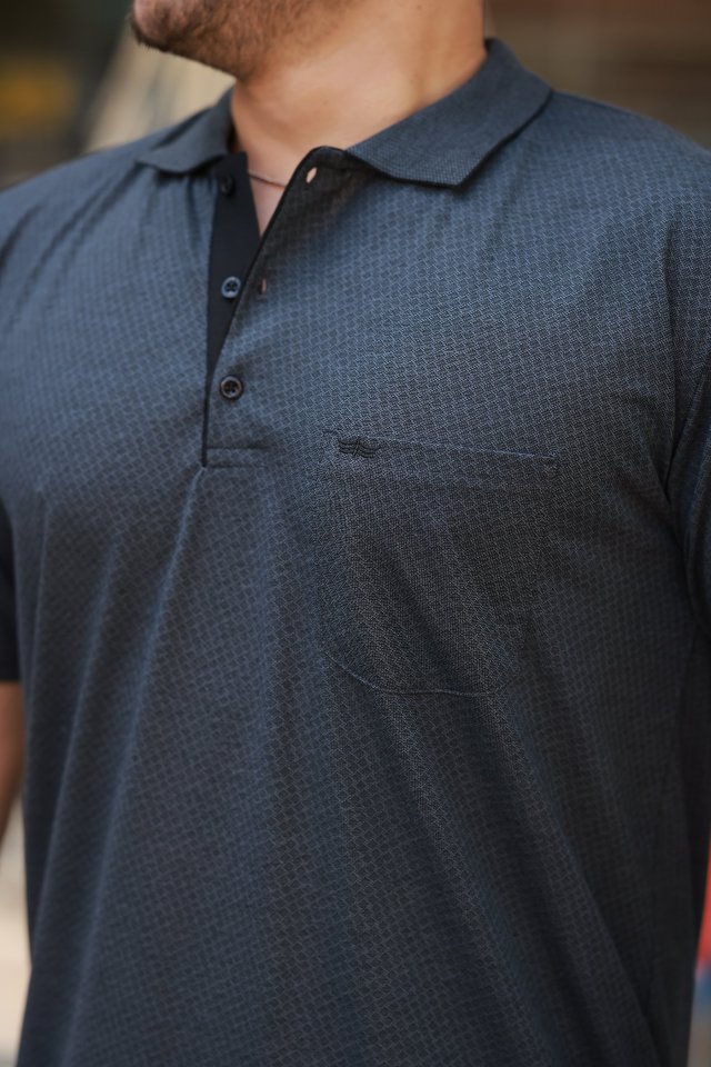 Erkek Yakalı Mini Jakarlı Kısa Kollu T-shirt