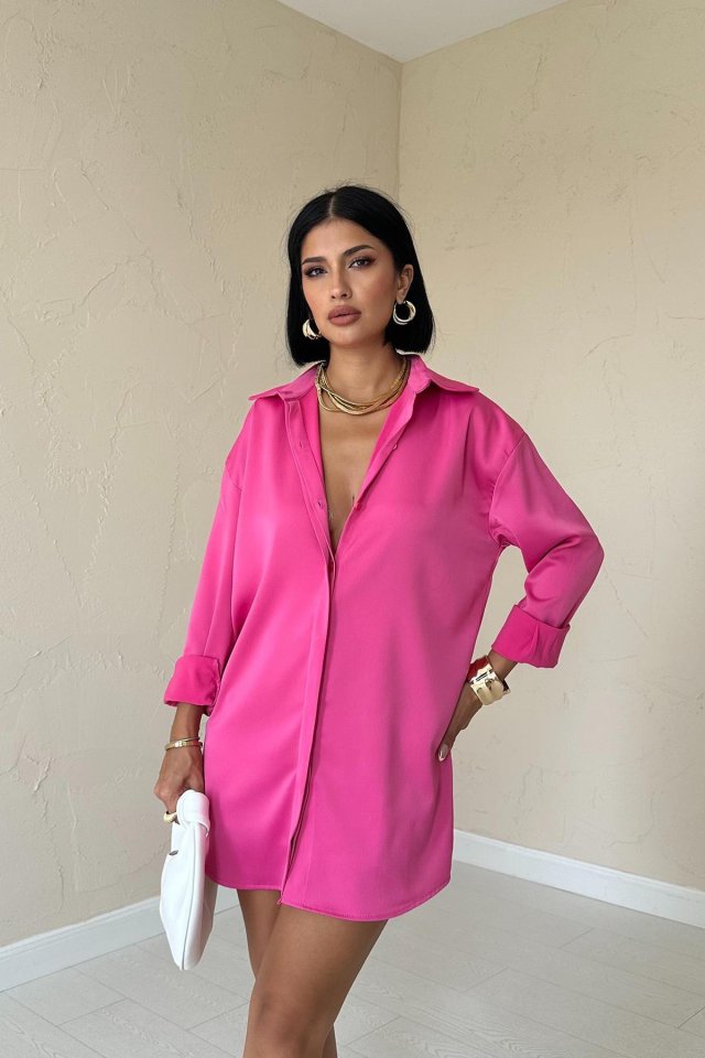 Fuşya Çıtçıtlı Saten Gömlek