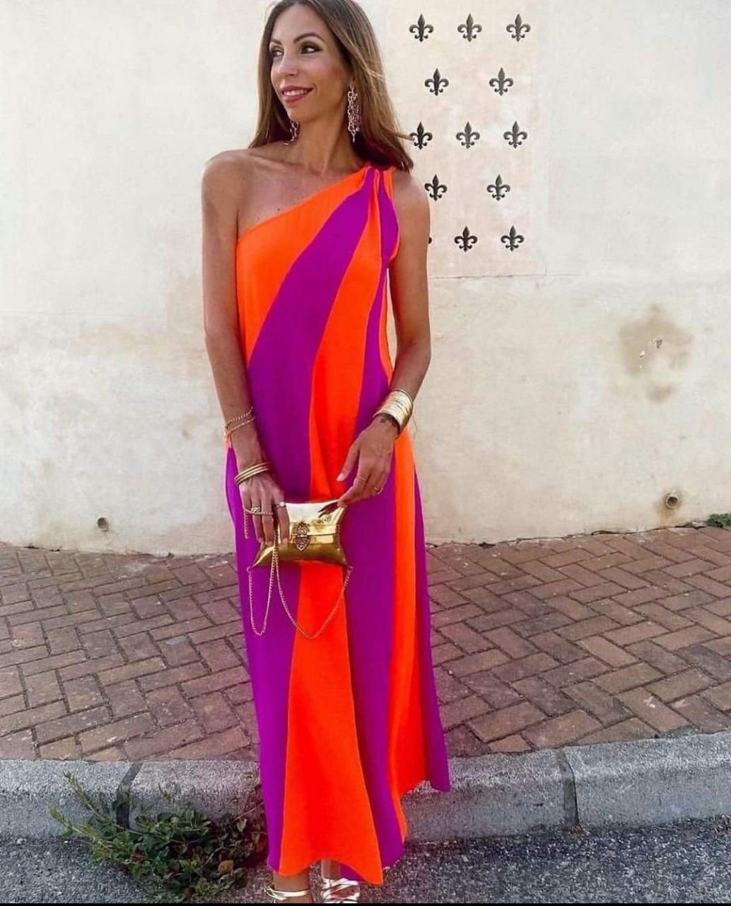 Kadın Aerobin Kumaş Parçalı Omuz Detay Maxi Boy Elbise