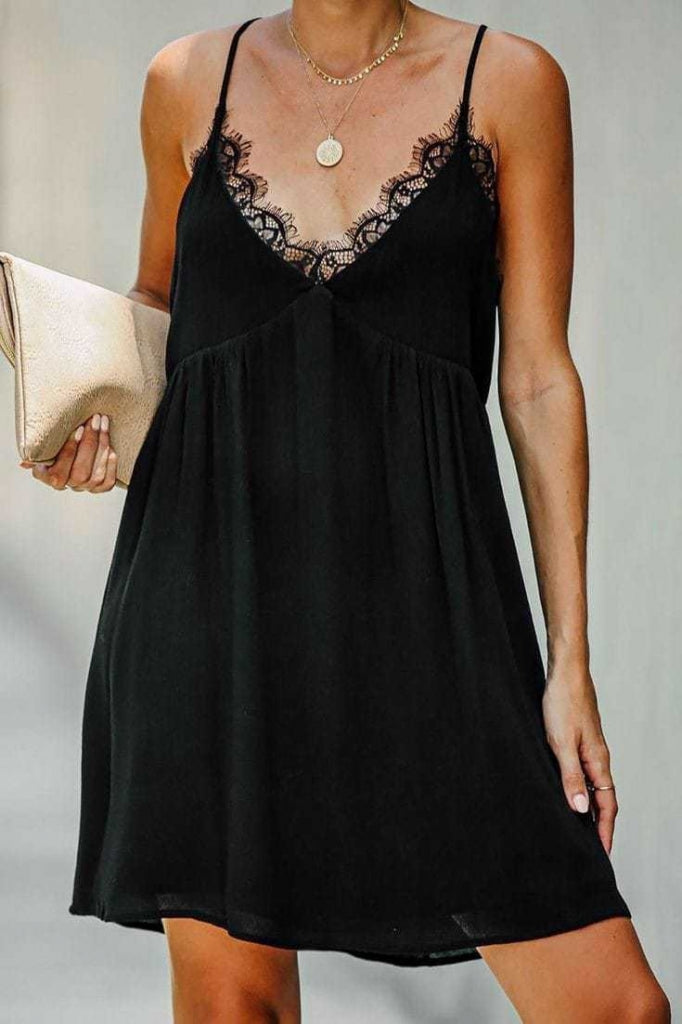 Kadın Askılı Dantelli V Yaka Bürümcük Kumaş Elbise