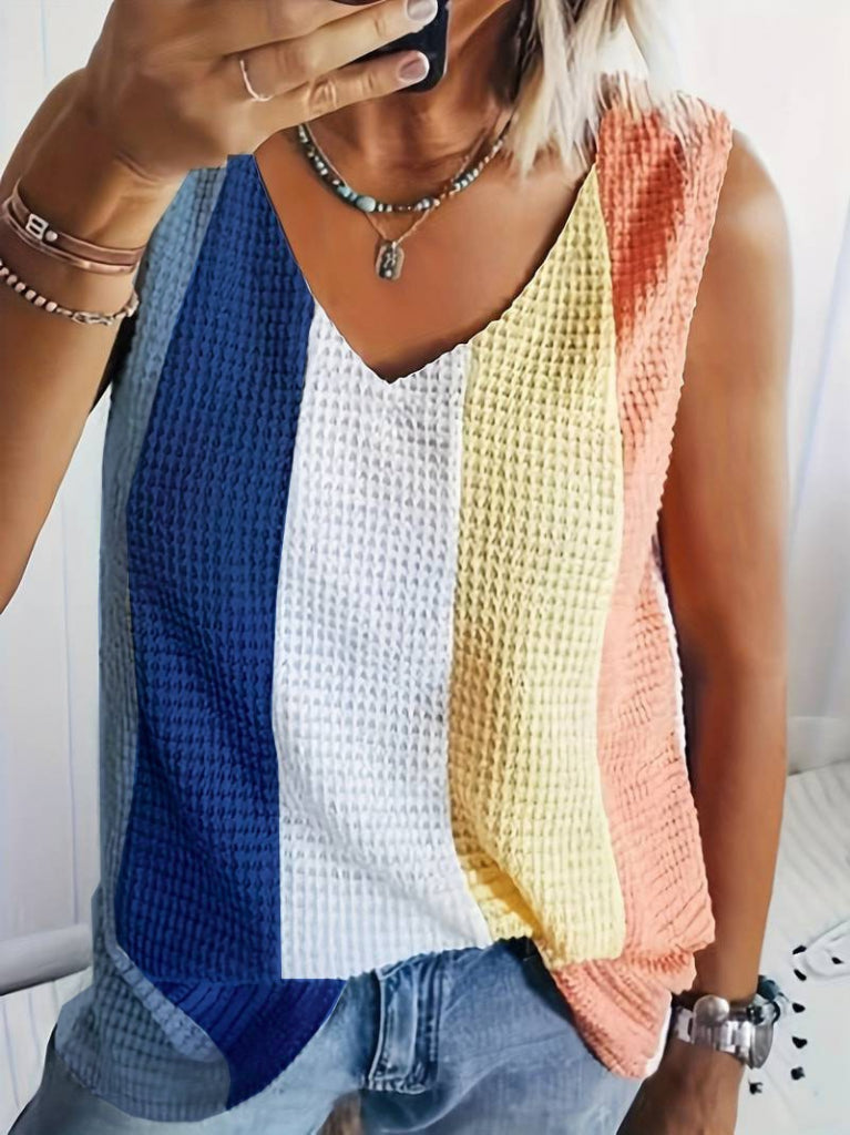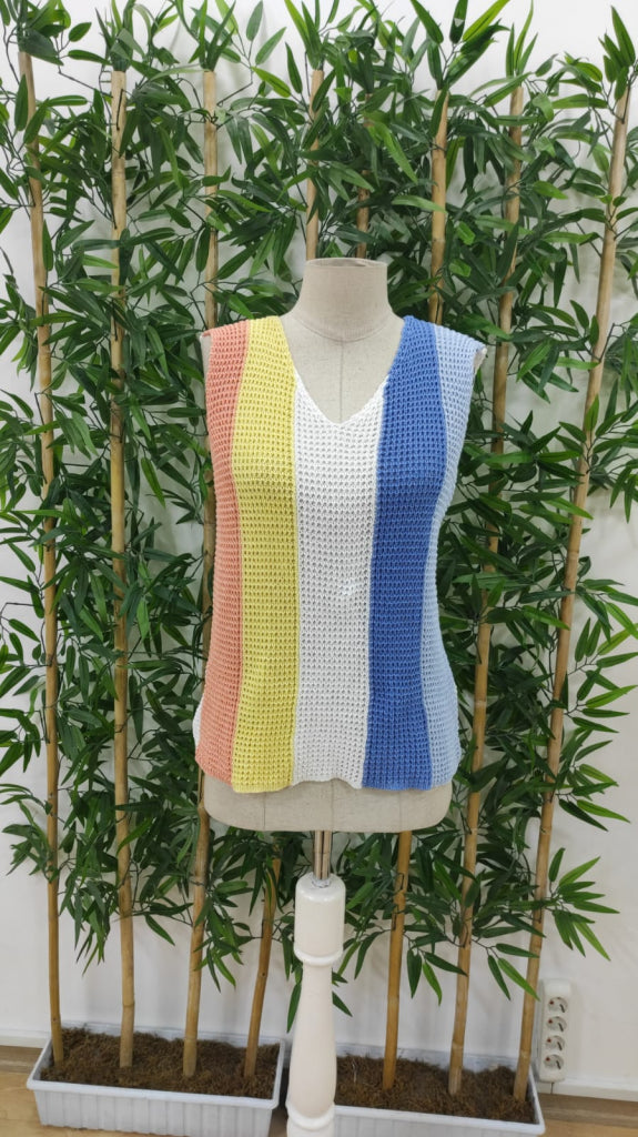 Kadın Askılı V Yakalı çok Renkli Triko Bluz