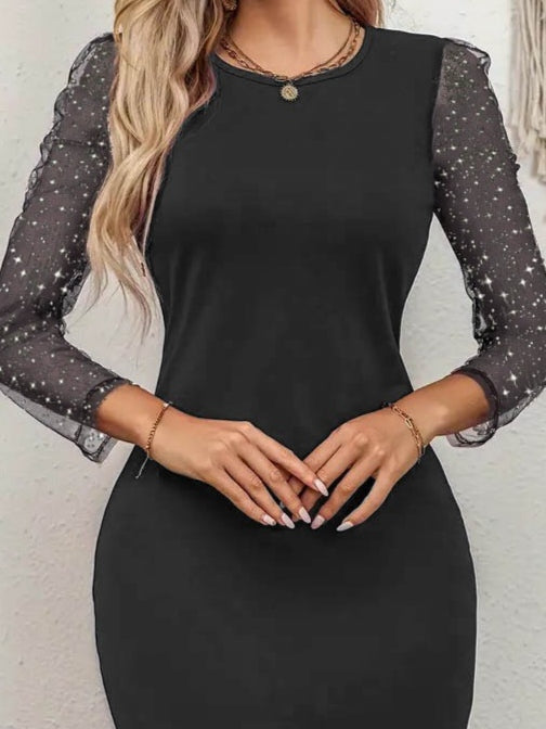 Kadın Bisiklet Yaka Kol Tül Detay Dalgıç Mini Boy Elbise