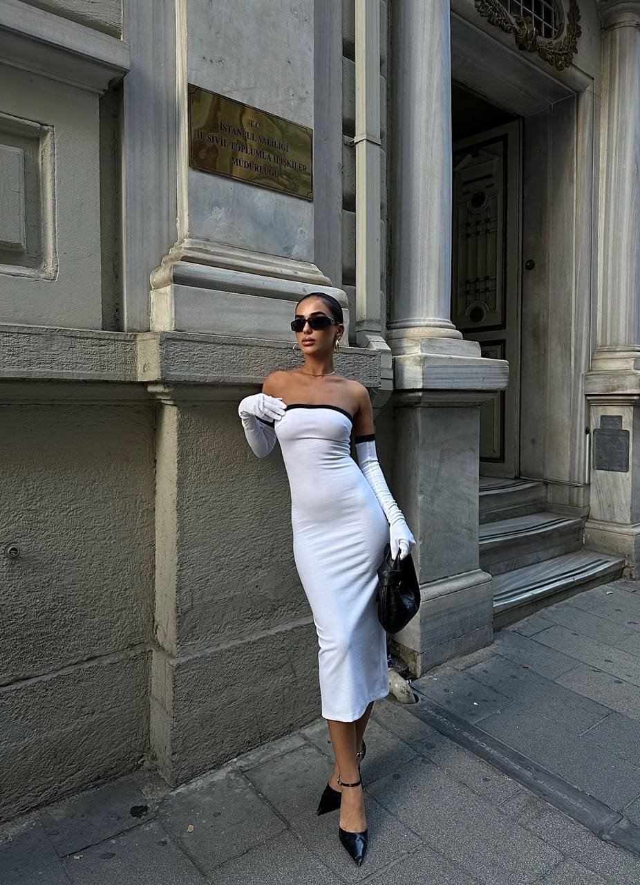 Kadın Dalgıç Kumaş Askısız Yırtmaç Detaylı Elbise