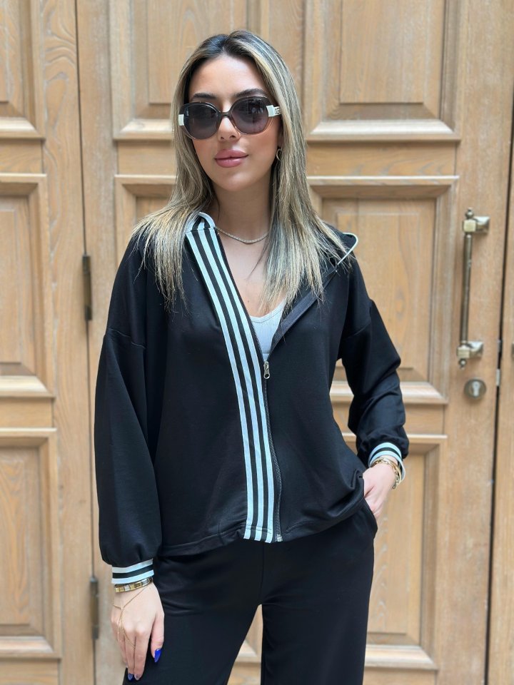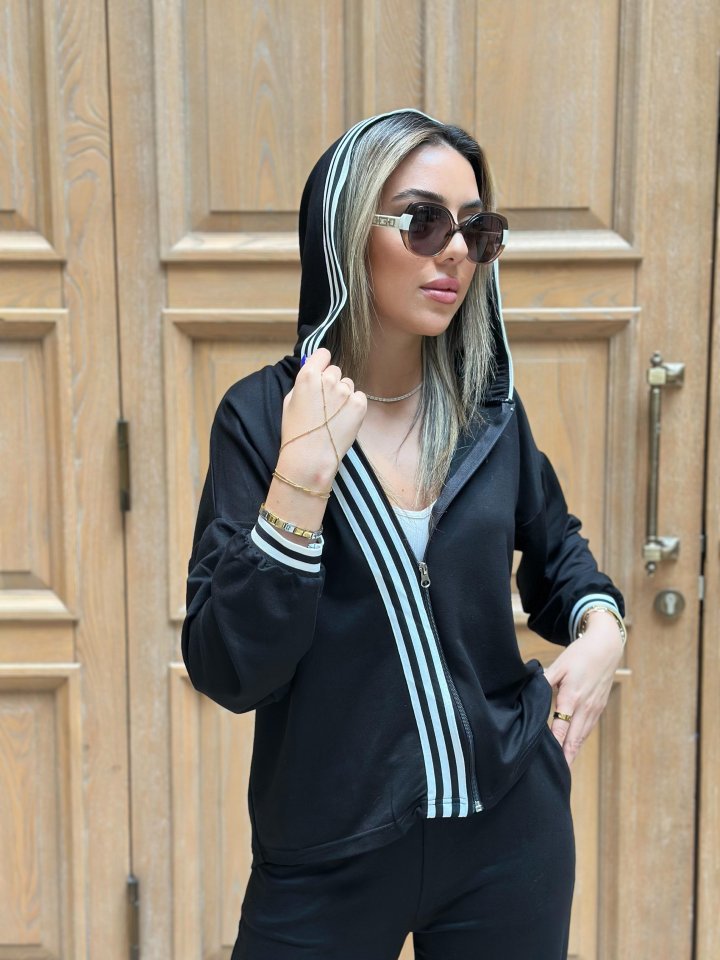 Kadın Iki Iplik Kumaş şerit Detaylı Kapşonlu Ikili Takım