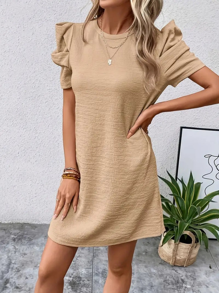 Kadın Kısa Kollu Bisiklet Yaka Karpuz Kol Krep Elbise