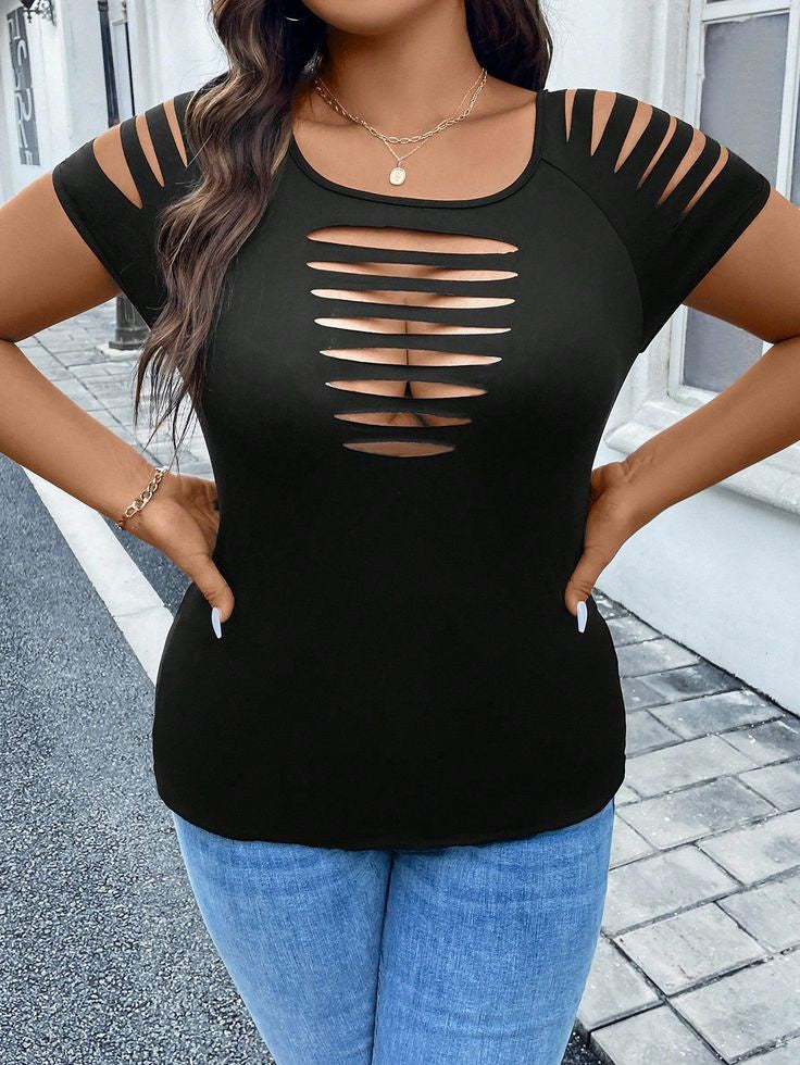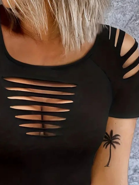 Kadın Kısa Kollu Omuz Ve Göğüs Kesik Detay Viskon Bluz