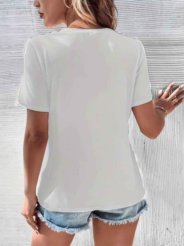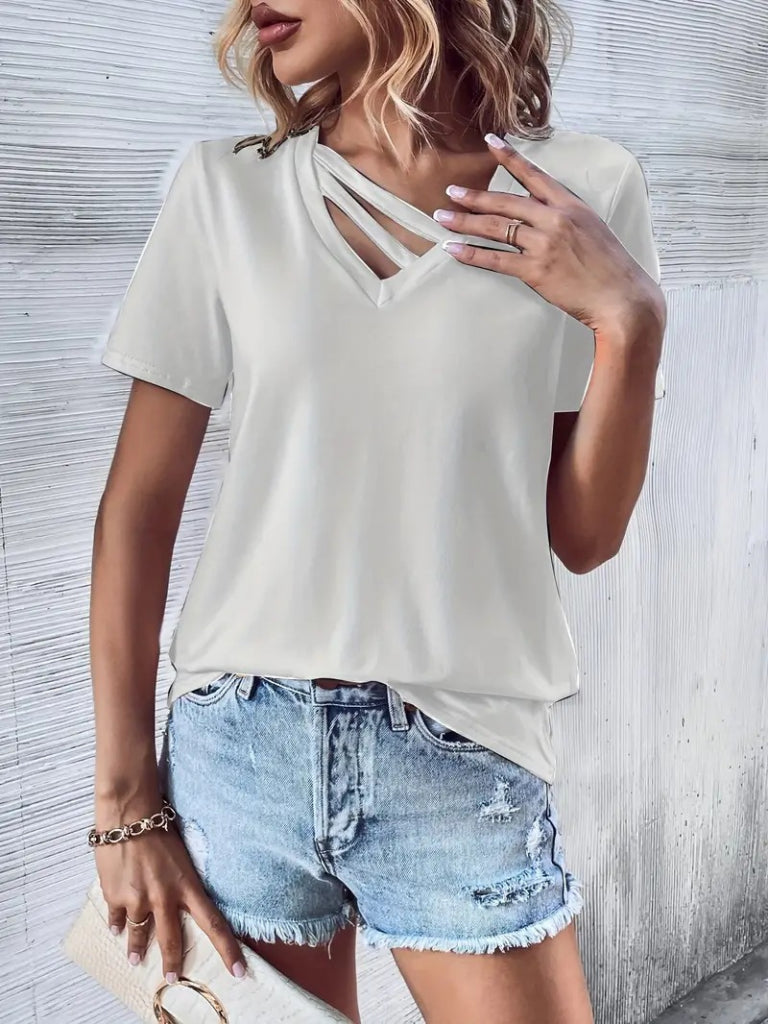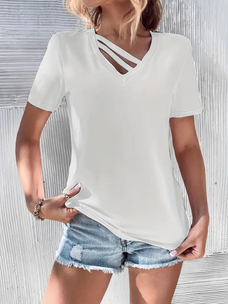Kadın Kısa Kollu V Yaka şerit Detay Viskon Bluz