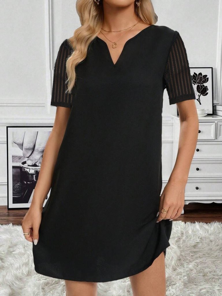 Kadın Kısa Kollu V Yakalı Kısa Janjan Krep Elbise
