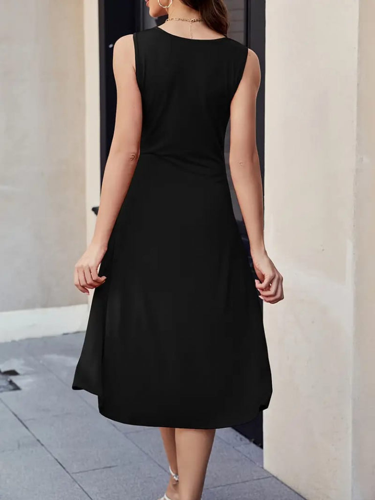 Kadın Sıfır Kol Bisiklet Yaka Bel Büzgü Detay Viskon Elbise