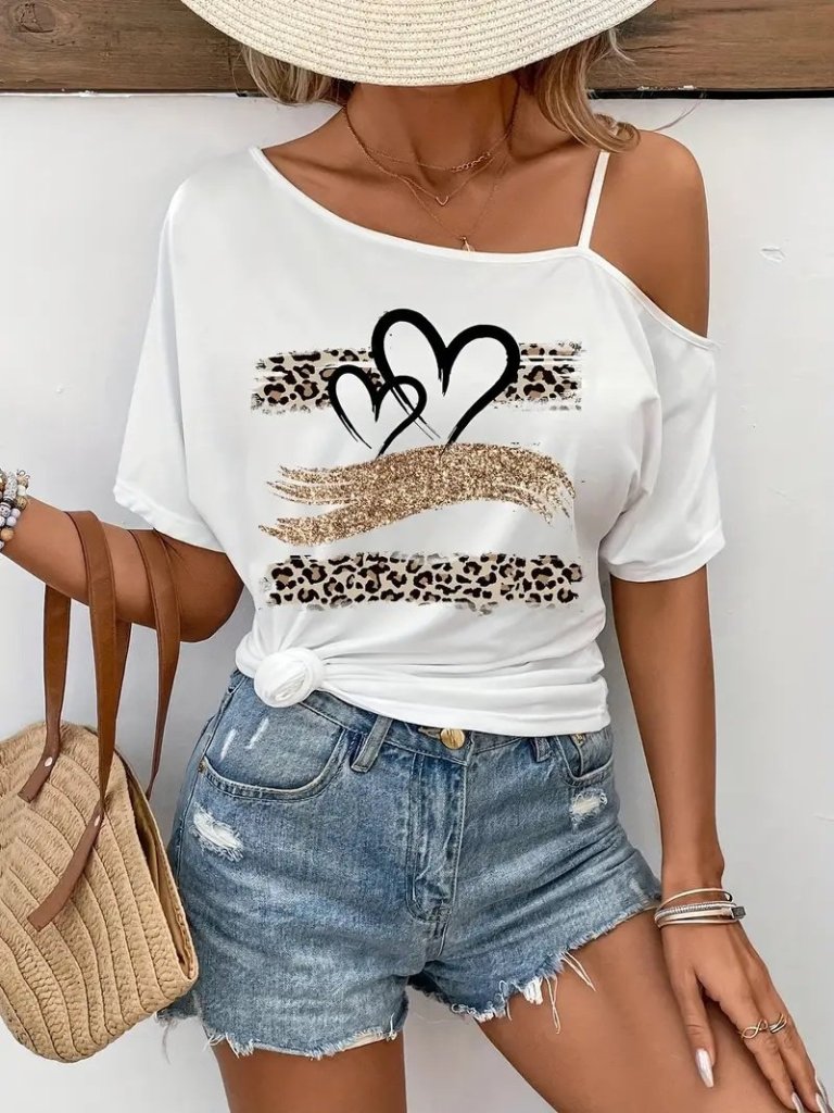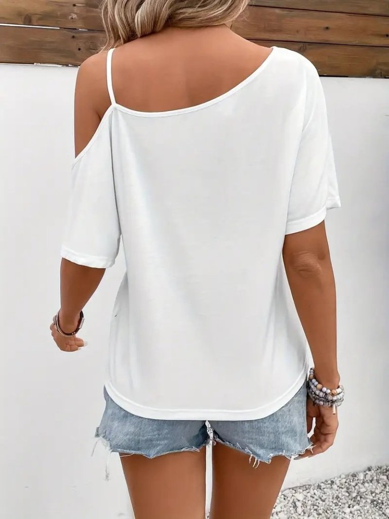 Kadın Tek Omuzu Açık Ip Askılı Baskılı Viskon Bluz