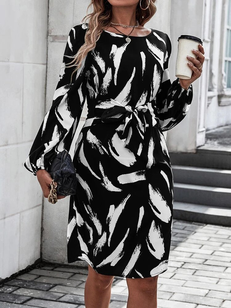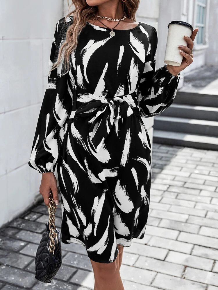 Kadın Uzun Kollu Bel Bağlama Detay Krep Elbise
