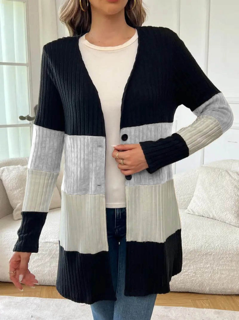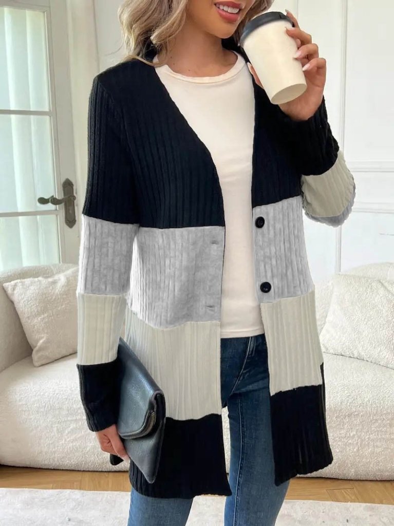 Kadın Uzun Kollu çok Renkli önden Düğmeli Uzun Ceket