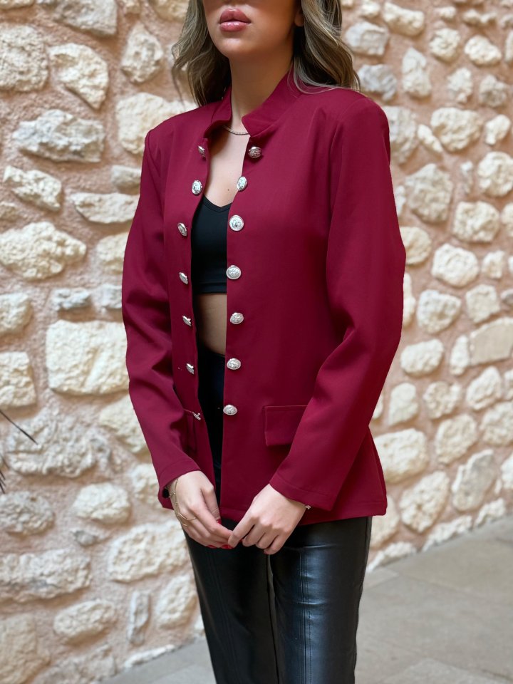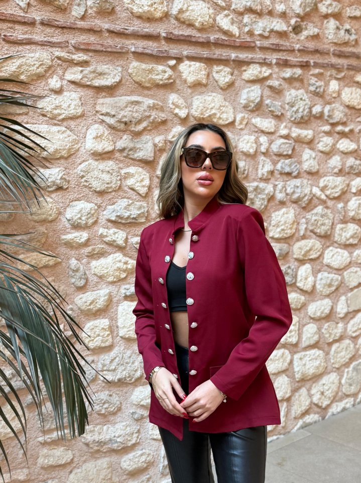 Kadın Uzun Kollu Hakim Yaka önü Açık Düğme Detaylı Atlas Ceket