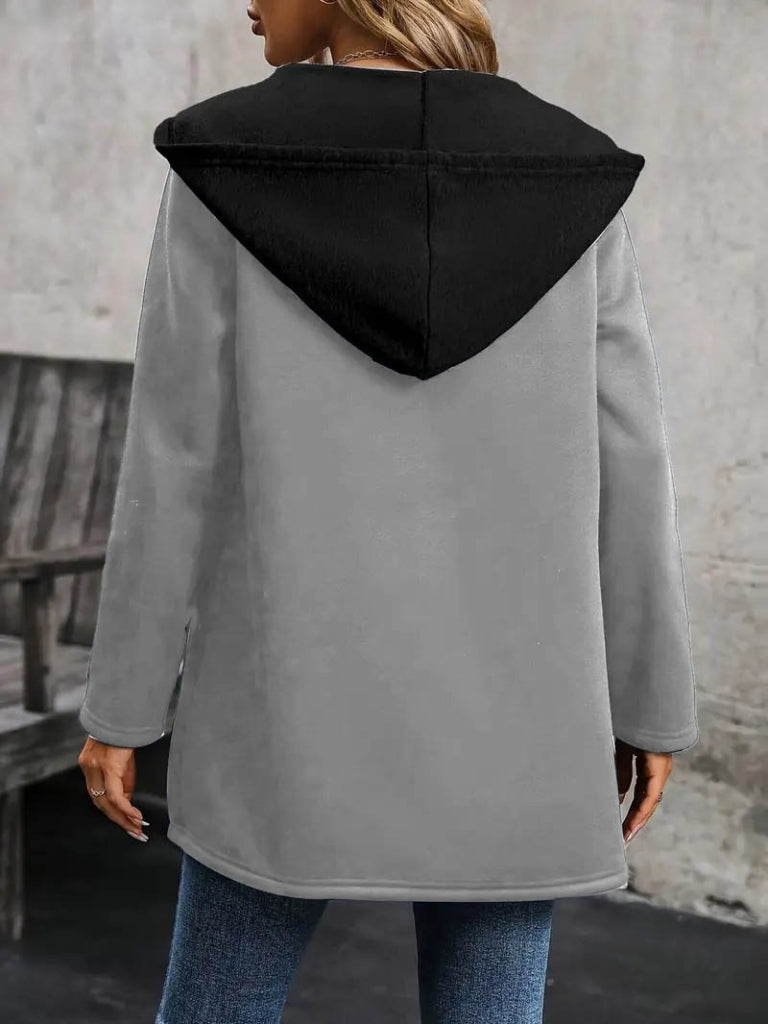Kadın Uzun Kollu Kapşonlu Bağcıklı Cepli Iki Iplik Ceket