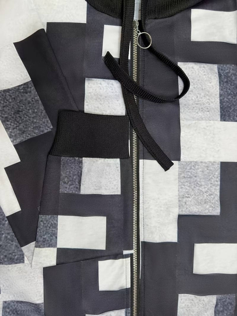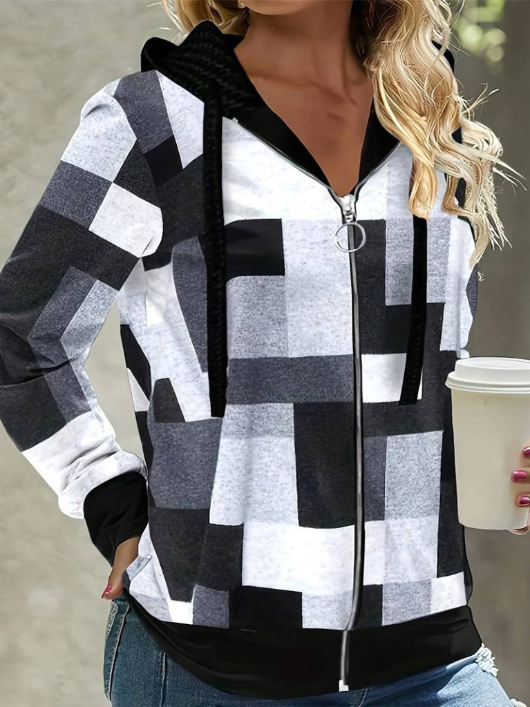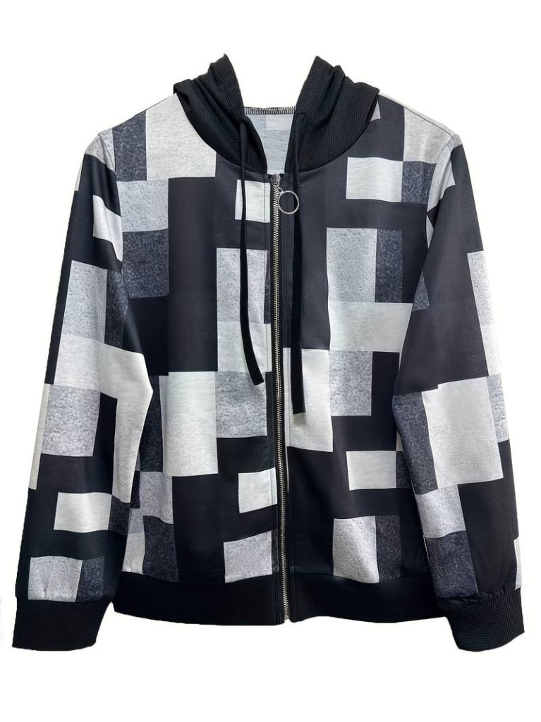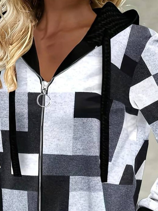 Kadın Uzun Kollu Kapşonlu önden Fermuarlı Desenli şardonlu Ceket