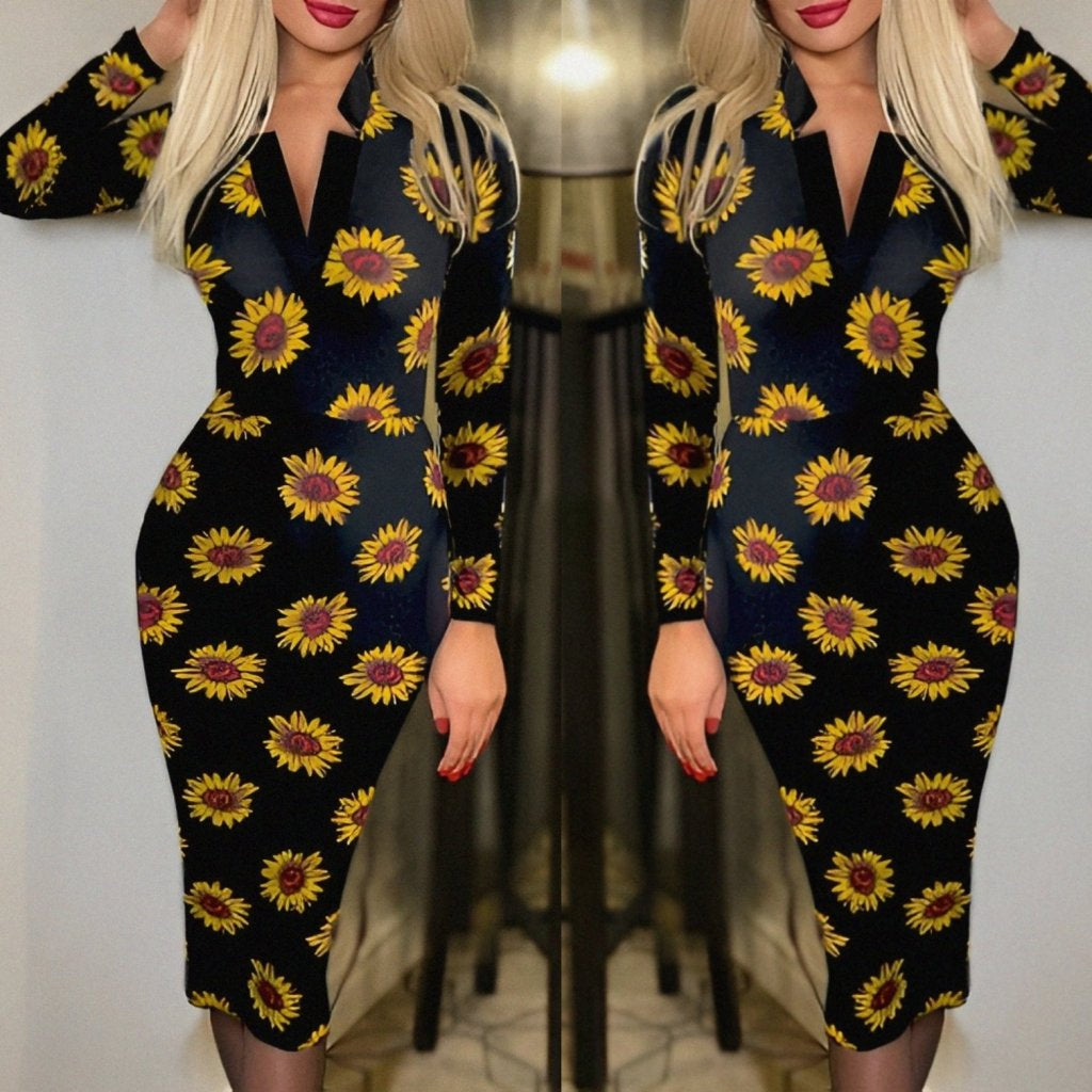 Kadın Uzun Kollu V Yaka Puantiyeli Krep Midi Boy Elbise