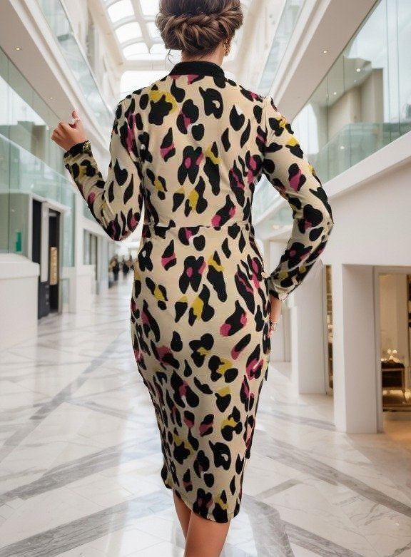 Kadın Uzun Kollu V Yaka Puantiyeli Krep Midi Boy Elbise