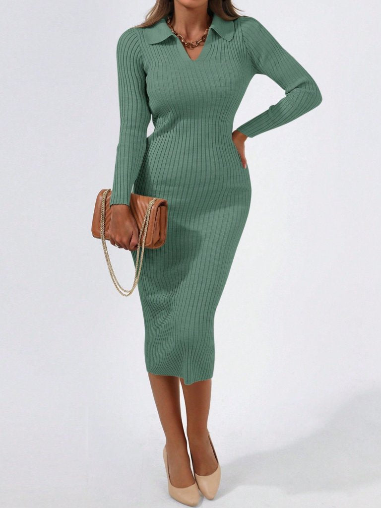 Kadın Uzun Kollu Yakalı Triko Elbise