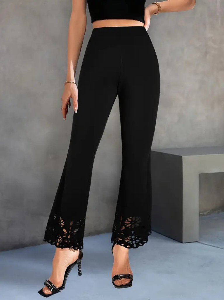 Kadın Yüksek Bel Paçaya Doğru Genişleyen Lazer çiçek Kesim Detaylı Ithal Krep Pantolon