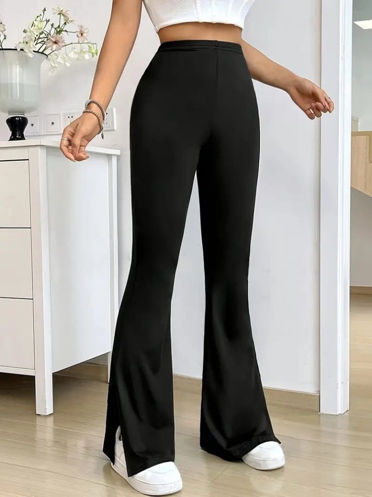 Kadın Yüksek Bel Paçaya Doğru Genişleyen Yandan Yırtmaçlı Dalgıç Pantolon