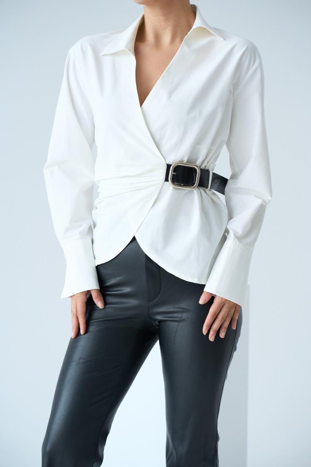 Kemerli Gömlek - Ekru