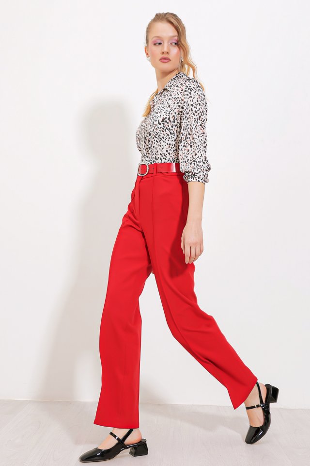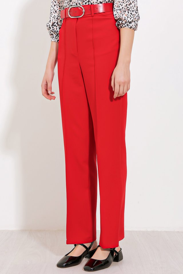 Kırmızı Yüksek Bel Kumaş Pantolon 6584