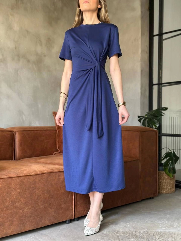 Osy Modal Yumuşak Dokulu Kumaş Yandan Bağlamalı Elbise - Lacivert