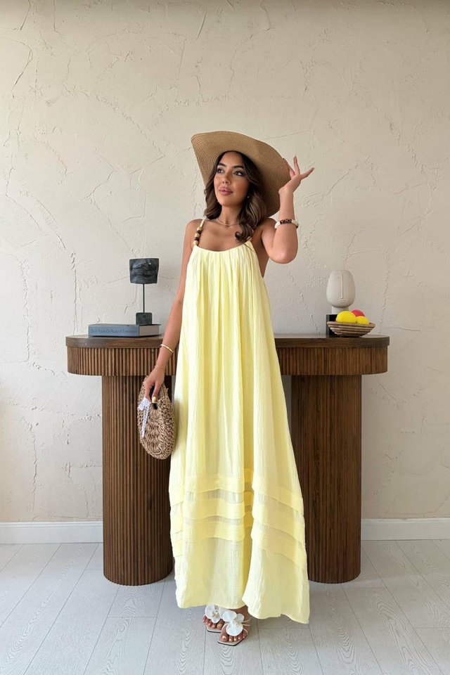 Sarı Askılı Müslin Elbise