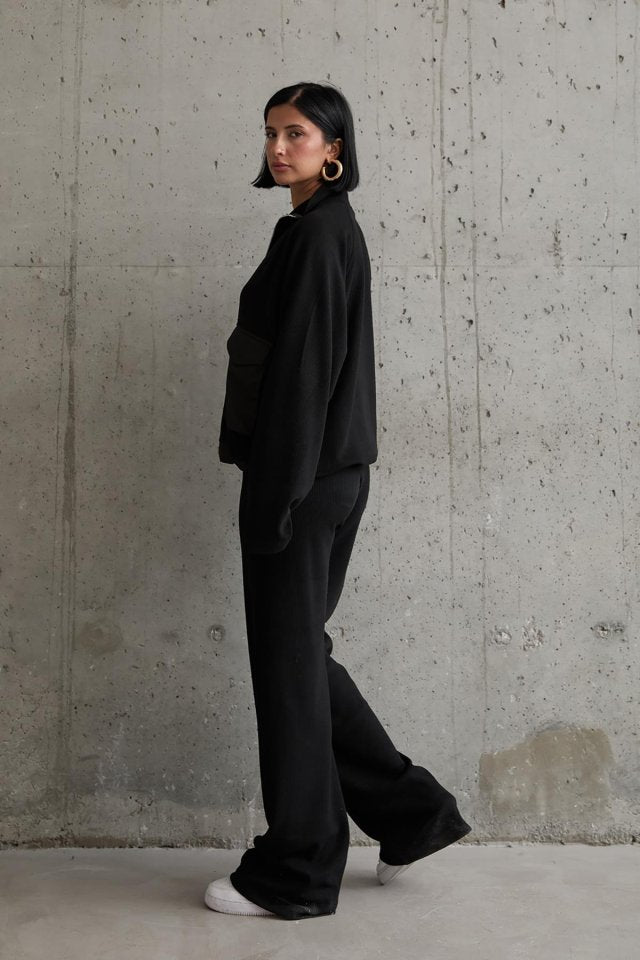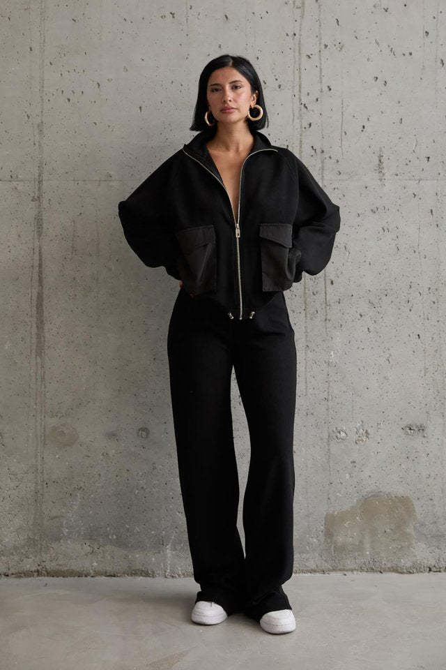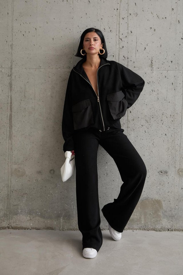 Siyah Cepli Triko Ceket Ve Pantolon Takım